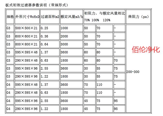 - 板式初效过滤器对≥5.0μm颗粒的过滤效率在40%~60%之间,常用于空调与通风系统的初级过滤,以及中央空调和集中通风系统预过滤和大型空压机预过滤。